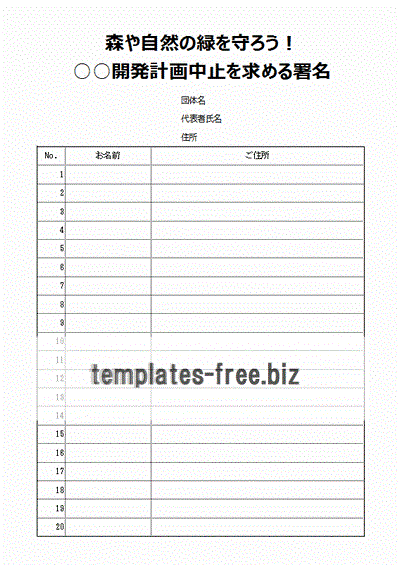 署名用紙テンプレート - Excelフリーソフト館 - 無料テンプレート集。