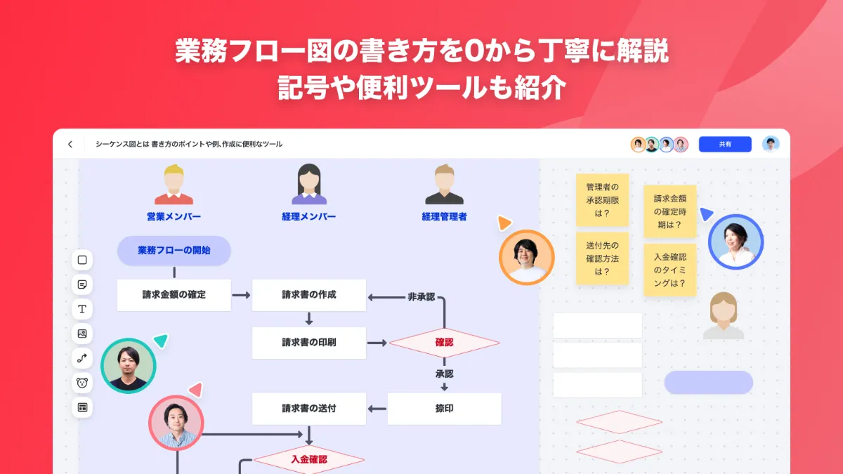 業務フローで仕事の流れを視覚化する!具体的な書き方と使用例を紹介オンラインホワイトボードツール Cacoo カクー。