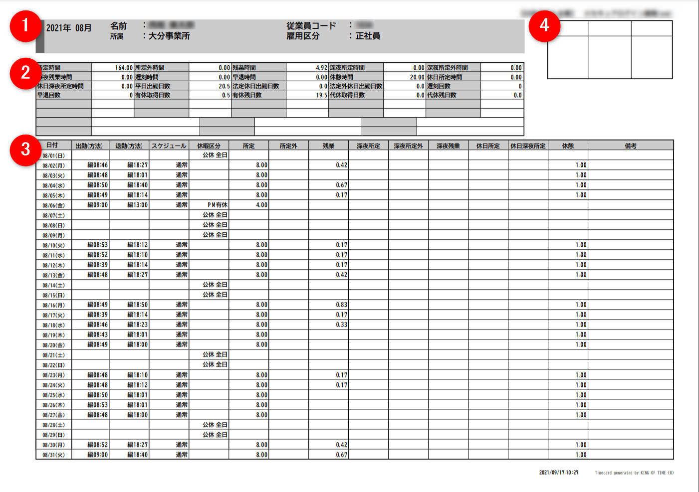 従業員画面 「タイムカード」の操作方法 PC– KING OF TIME オンラインヘルプ。