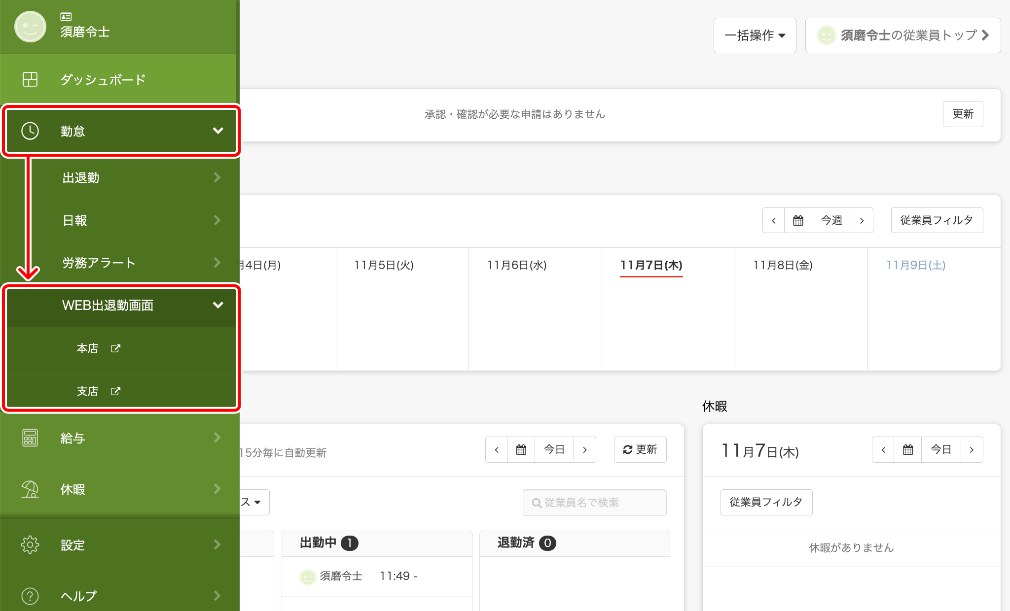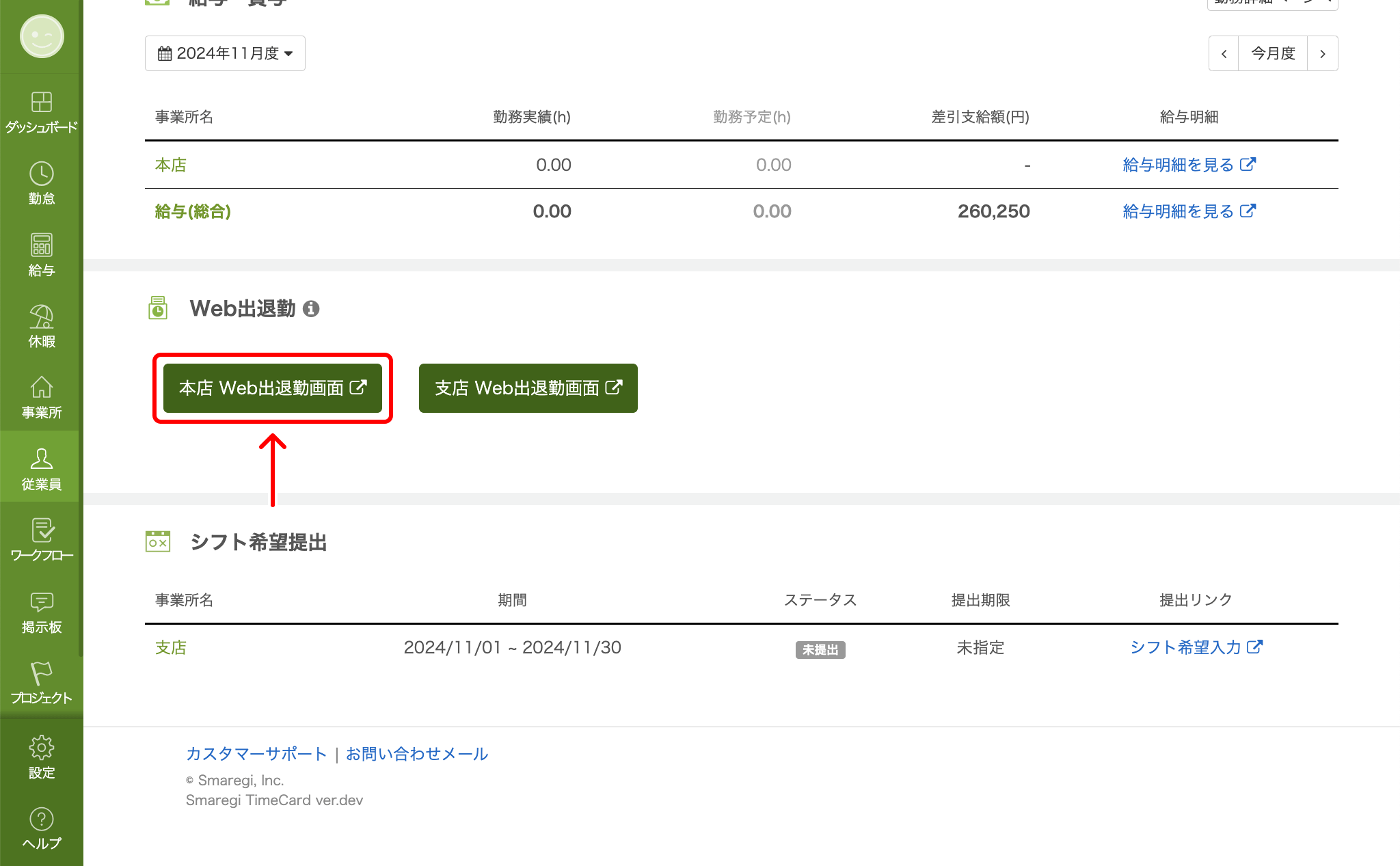 PCやタブレットを使って打刻する WEB出退勤画面– スマレジ・タイムカード ヘルプ。