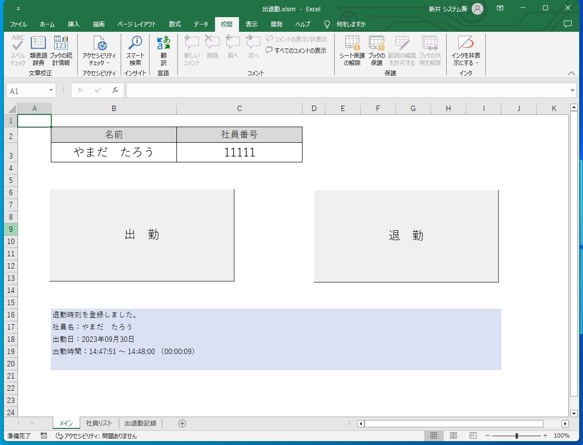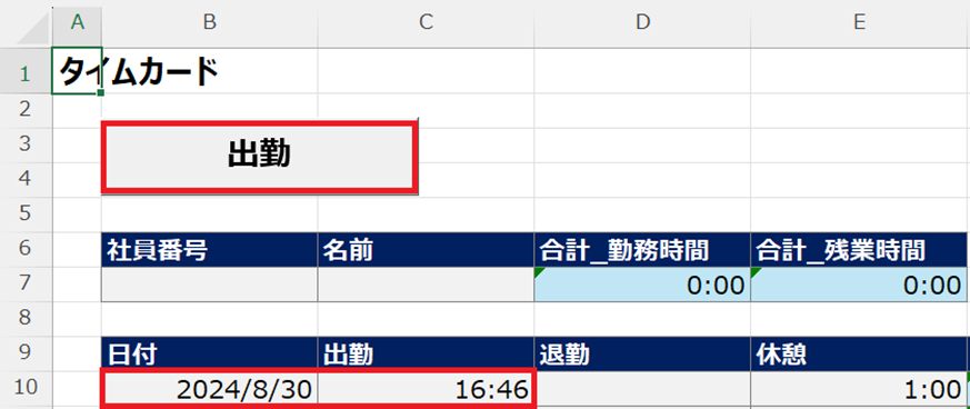 Excelでタイムカードのような出勤・退勤を実現してみよう!徒然なるままに。