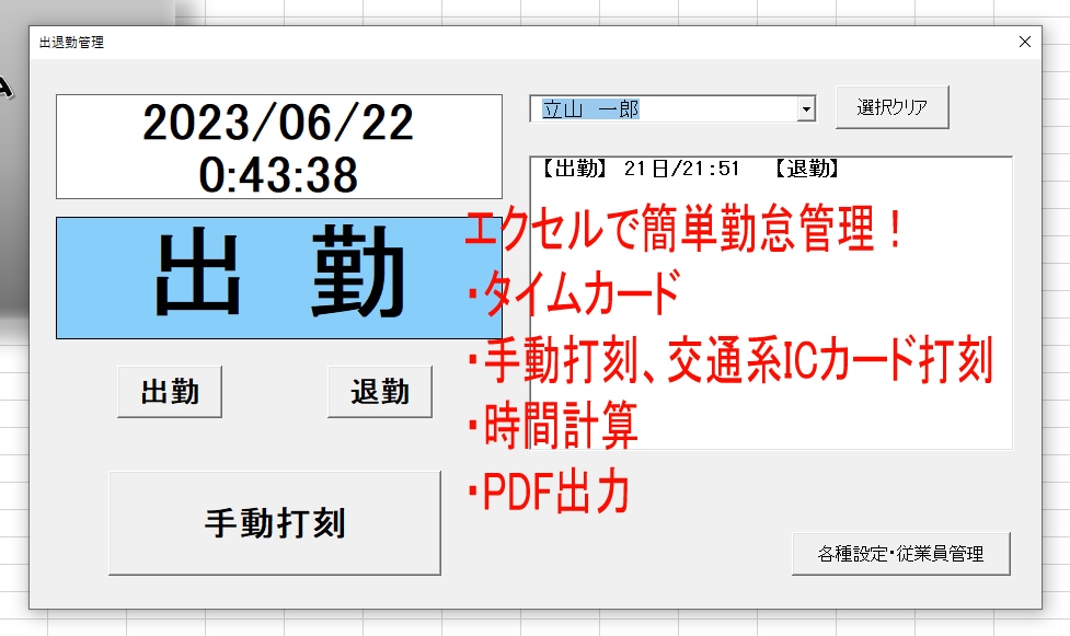 エクセルでタイムカード!簡単に勤怠管理ができます エクセルを使って簡単に出退勤管理!交通系ICカード利用も可能ココナラ。