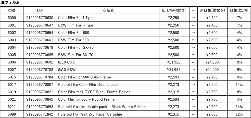 ポラロイドフィルムの値上げについて 2022年– Bob's Polaroid Works。