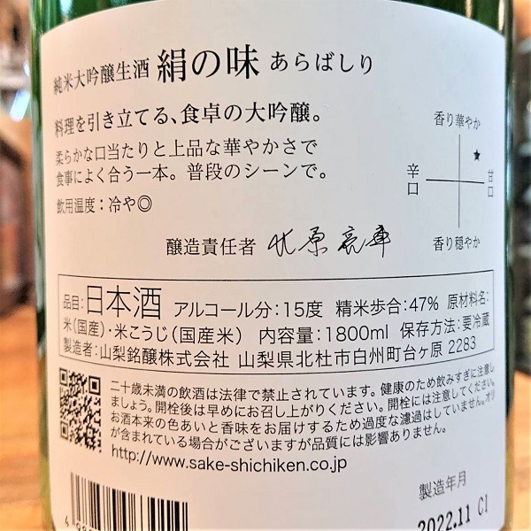 大吟醸 絹 限定品 七賢 絹の味 純米大吟醸 あらば。