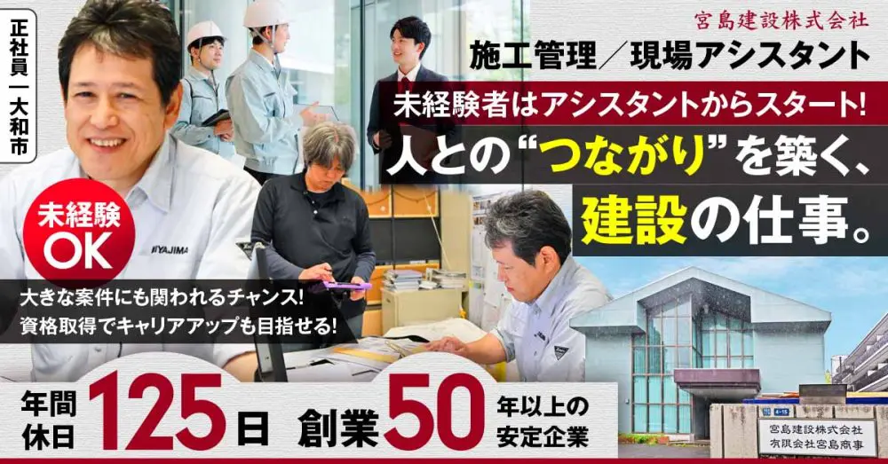 宮島建設株式会社 社内・建設現場の作業スタッフ 正社員 の募集 大和。