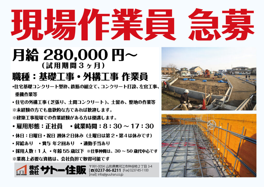 土木工事作業員募集中求人一覧ページにて求人を募集しております。