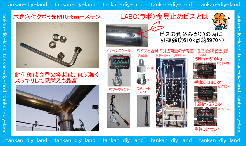 単管 足場 パイプ ジョイント 金具 継手 工作 クランプ ラボ 強度単管パイプのDIYや組み方の学習なら単管DIYランド。