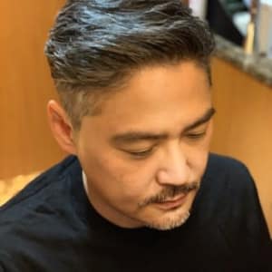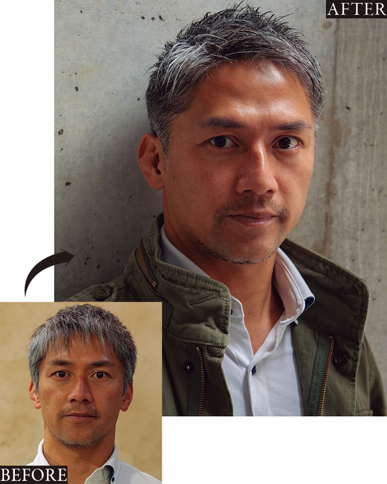 40代50代ビジネスマン向けグレイヘアツーブロックアップバングヘアスタイル人形町、水天宮前の理容室、床屋 HAIR&GROOMINGYOSHIZAWA Inc ヨシザワインク。