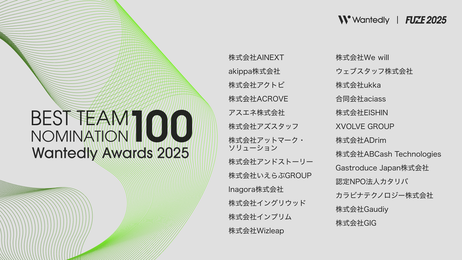 Wantedly Awards 202540,000社の中から、「採用ブランディング」や「共感採用」を体現する BEST 100 社 を決定!Wantedly, Inc。