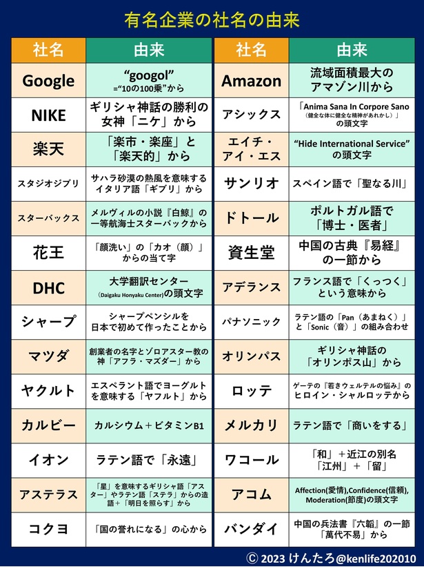 意外と知らない!?あの有名な会社名の由来100選 まとめ- 社会人の教科書。