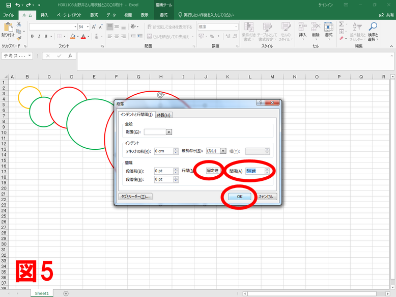 図形内の文章の段落や行間を調整する:Excel基本講座。