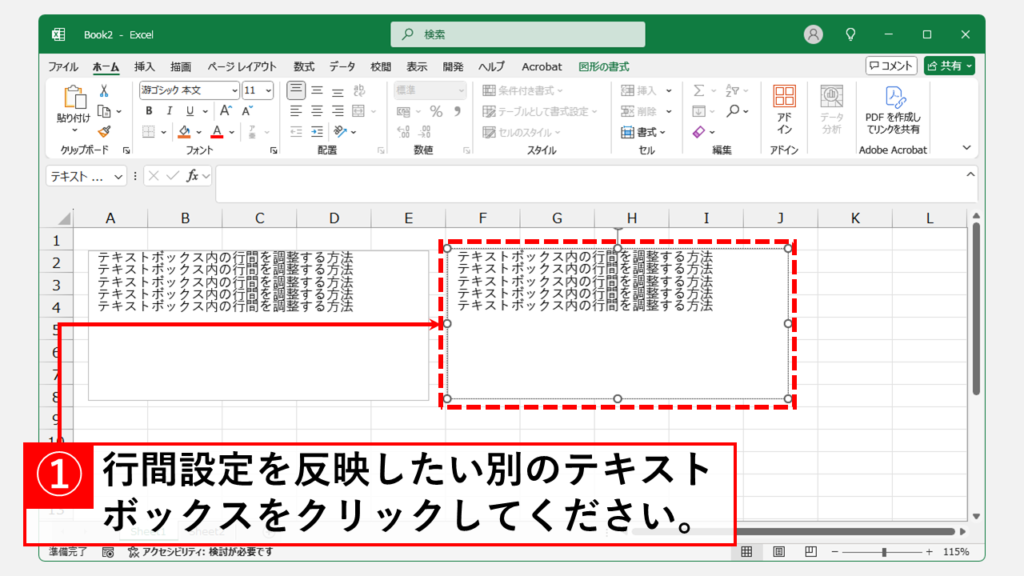 エクセル テキストボックスの文字の行間が上手く調整できない原因と対処方法を紹介Excelの森。