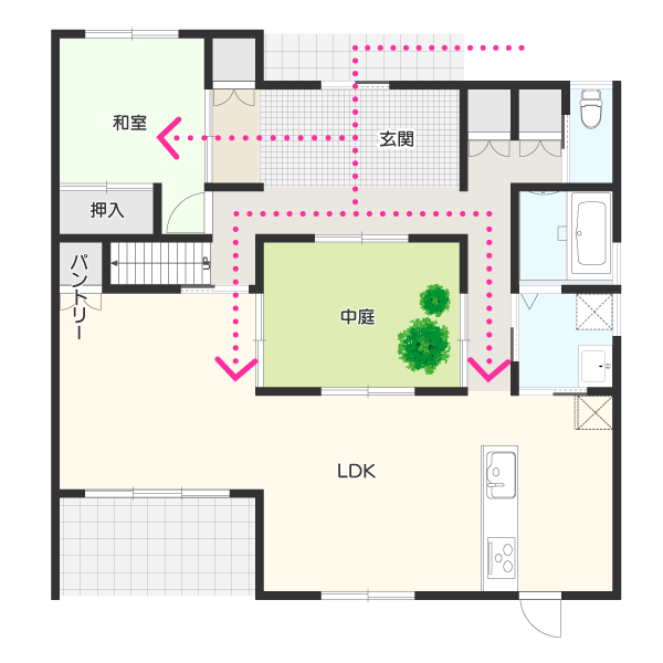 間取りがおもしろい平屋実例04 家事動線が短くすっきりした家暮らしとおしゃれの編集室。