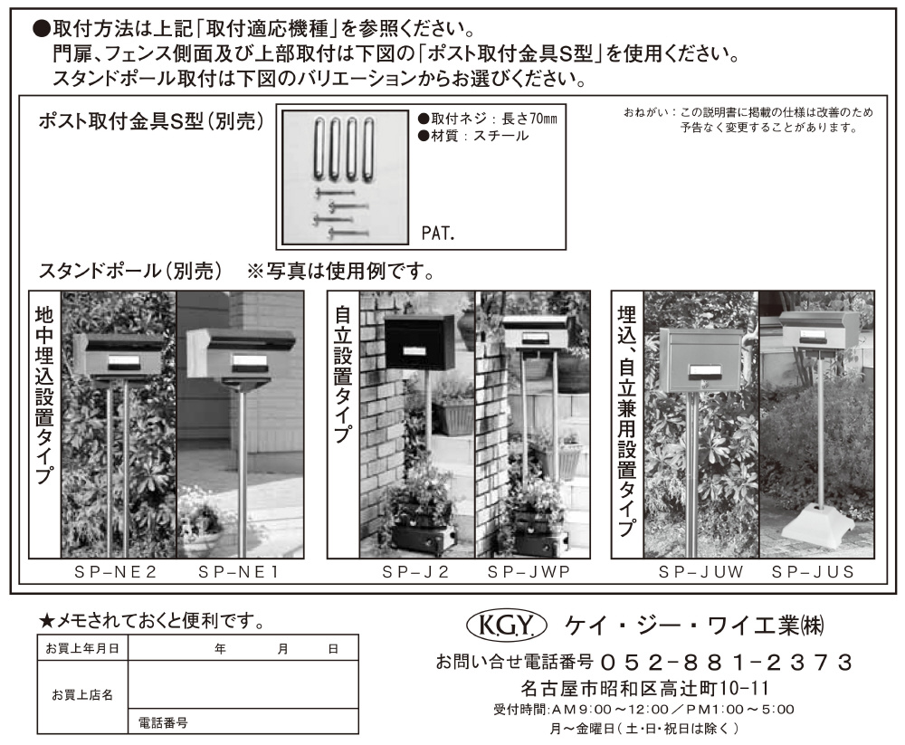 KGY ブロックポスト 前入後出F-450 『ケイ・ジー・ワイ 郵便ポスト』。