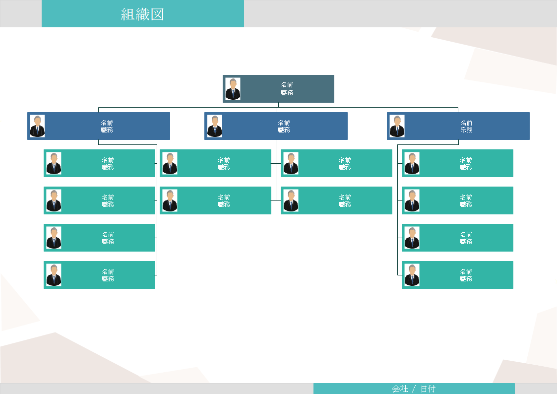 写真入りの会社組織図テンプレート - 無料ダウンロード。