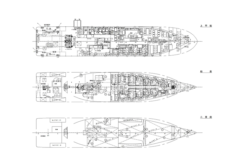一般配置図・機器配置図 » おしょろ丸 うしお丸北海道大学水産学部附属練習船。