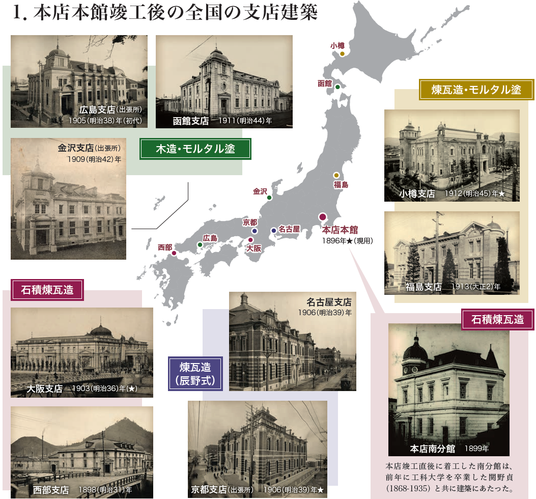 辰野金吾の建築・日本銀行本店等コンドルから辰野金吾- コンドルたちのつくった東京東京都 古地図 歴史 地歴 ツナガルマップ。