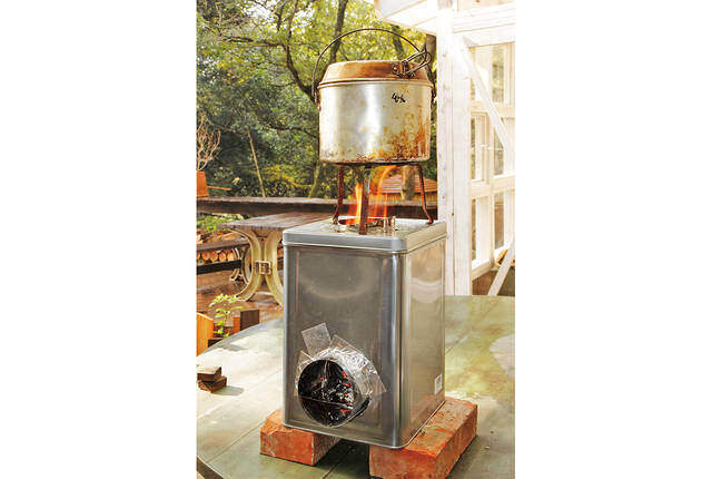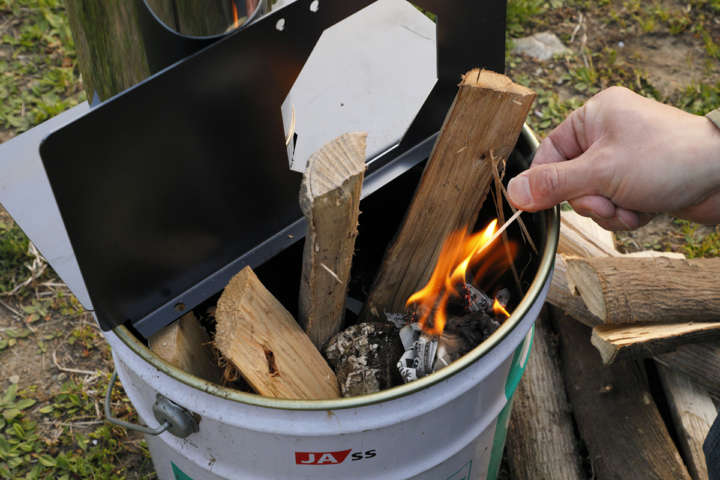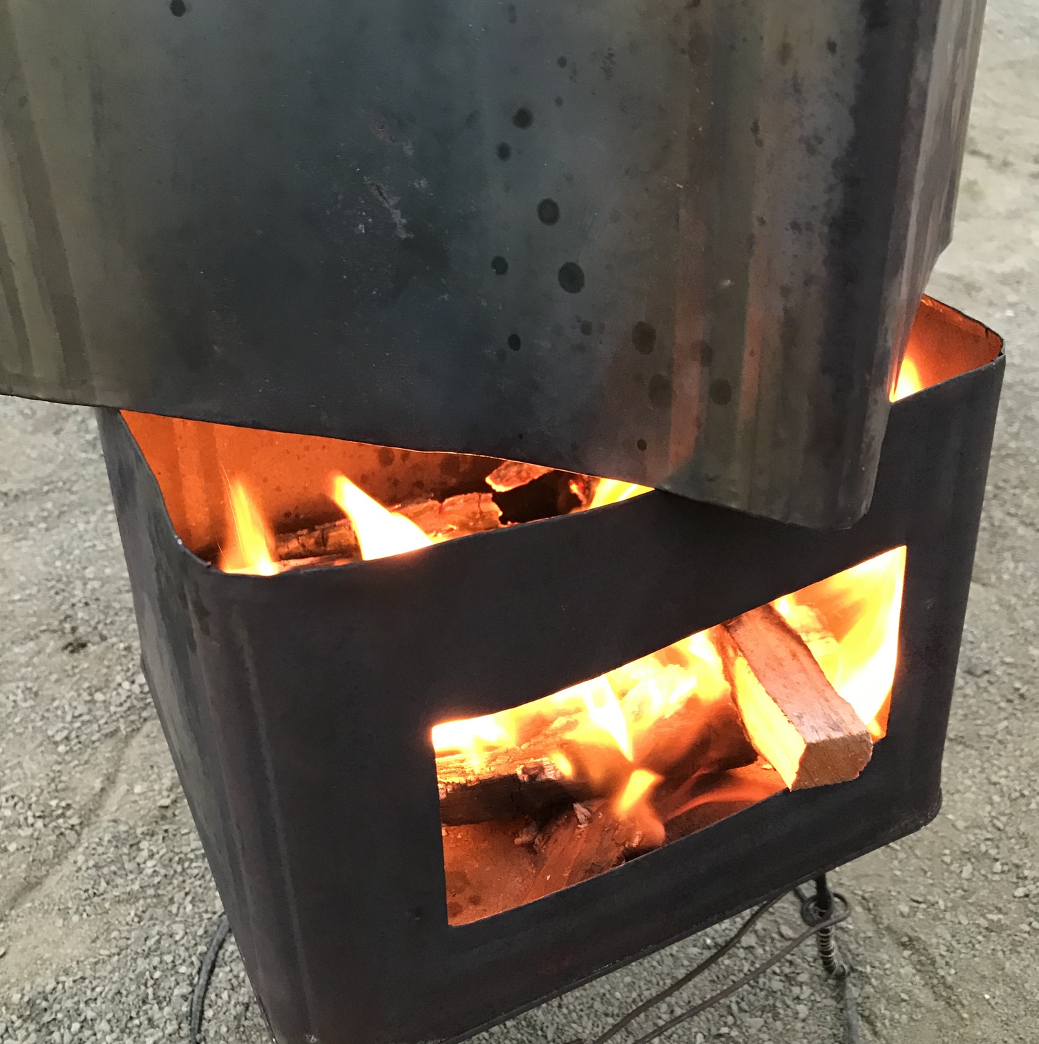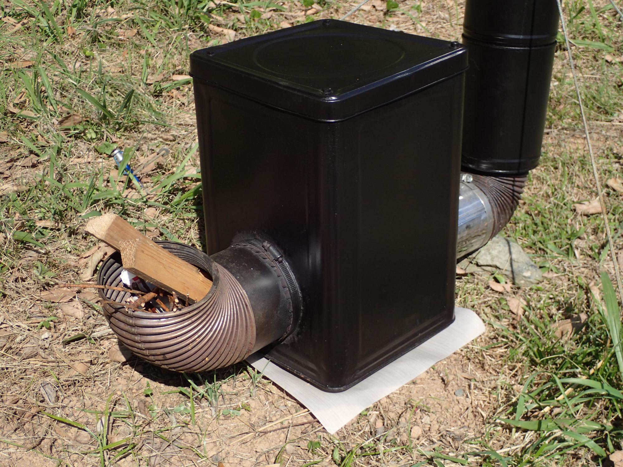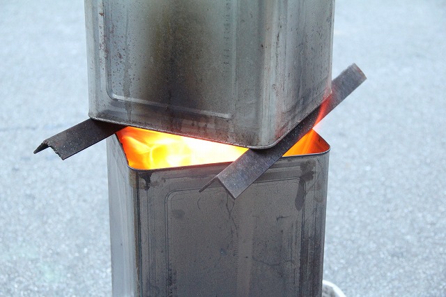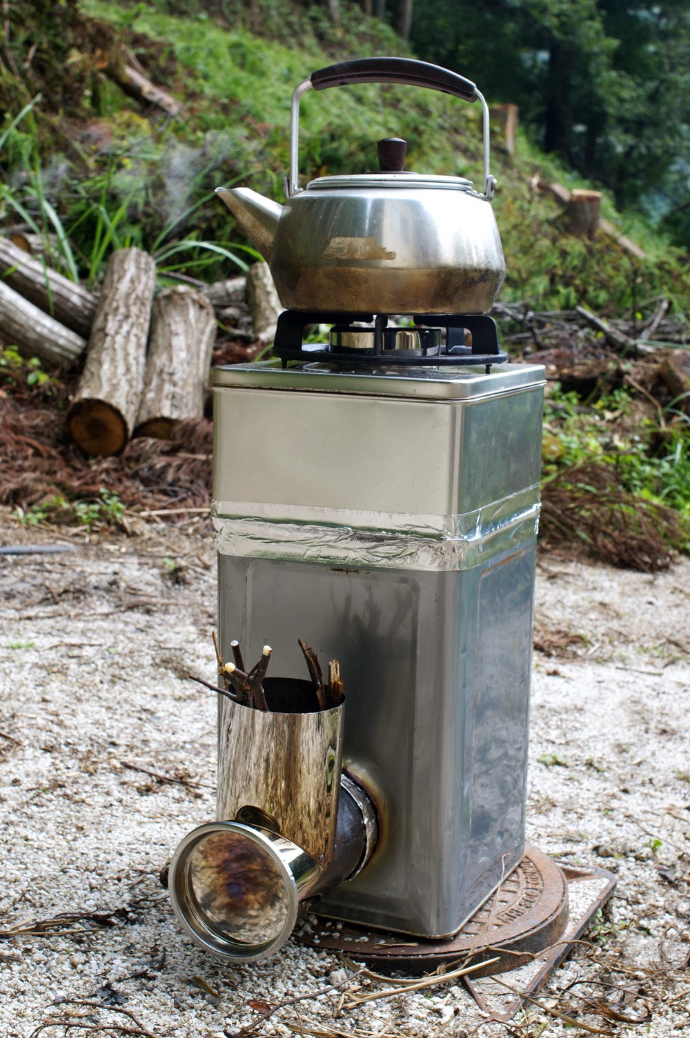 災害対策用ロケットストーブ。一斗缶を使ってコンパクトに: 焚き火小屋の備忘録。