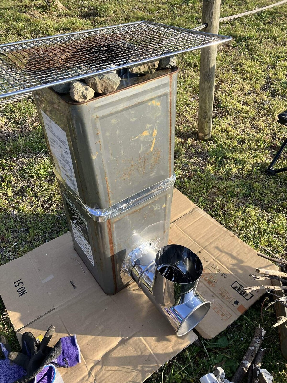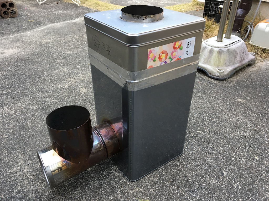DIYhandmadeキャンプ一斗缶炎薪ストーブプロメア伊江島沖縄一斗缶ストーブ一号二号大活躍∑ ゚Д゚。