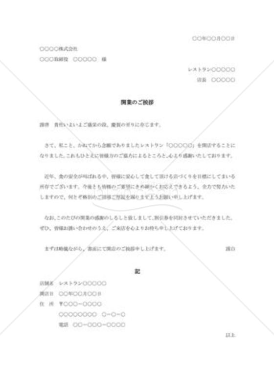 開店・開業・独立の通知、お知らせ、ご挨拶状の書き方と例文。