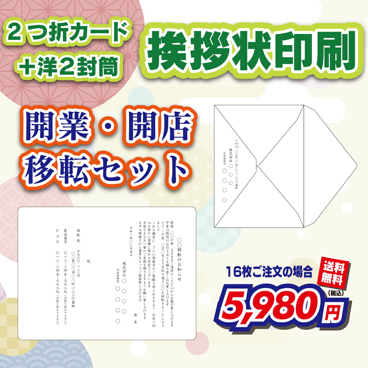 開店・開業のための 封筒付き挨拶状開業準備.com。