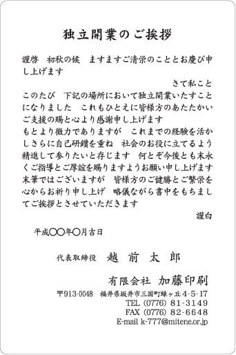 独立・会社設立 - 法人のお客様向け挨拶状挨拶状なら超!激安 スピード挨拶状印刷.com。