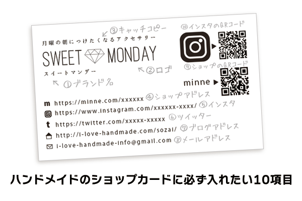 ハンドメイドのショップカードに必ず入れたい10項目ハンドメイドイラスト素材やさん。