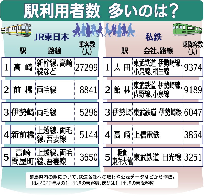 群馬県内の駅 利用者数はJR高崎駅と東武太田駅がトップ ランキング上毛新聞電子版群馬県のニュース・スポーツ情報。