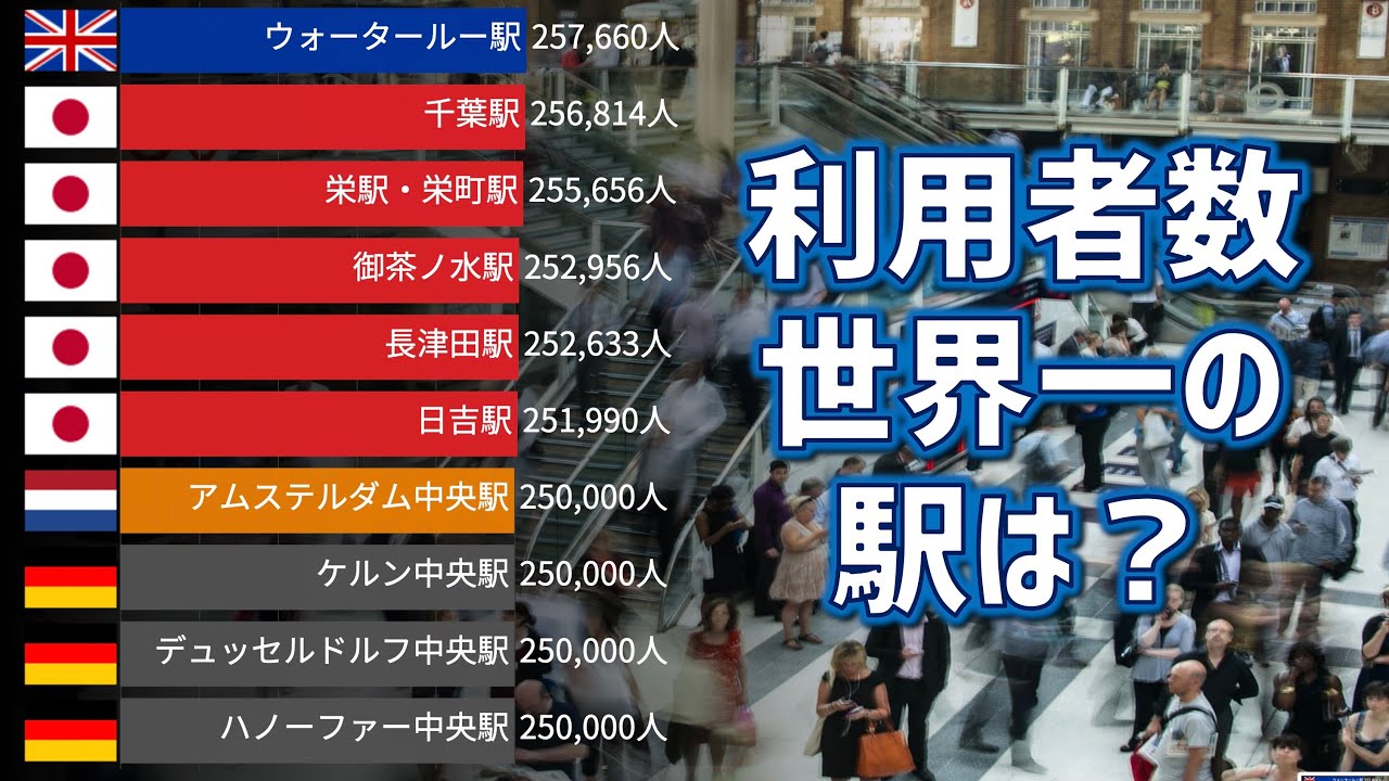 世界 鉄道駅の利用者数ランキング Top100 動画でわかる統計・データ- YouTube。