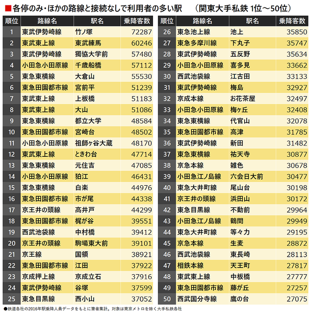 各停だけ・接続なし」で利用者が多い駅は? - ライブドアニュース。