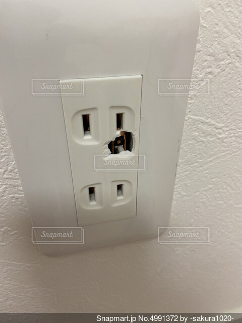 割れたコンセントカバーの写真・画像素材-Snapmart スナップマート。