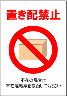 置き配しないで下さいの貼り紙フリー貼り紙のペラガミ.com。