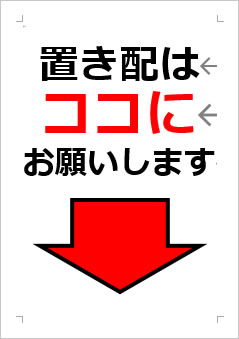 置き配はこの上に置いて下さいの貼り紙フリー貼り紙のペラガミ.com。