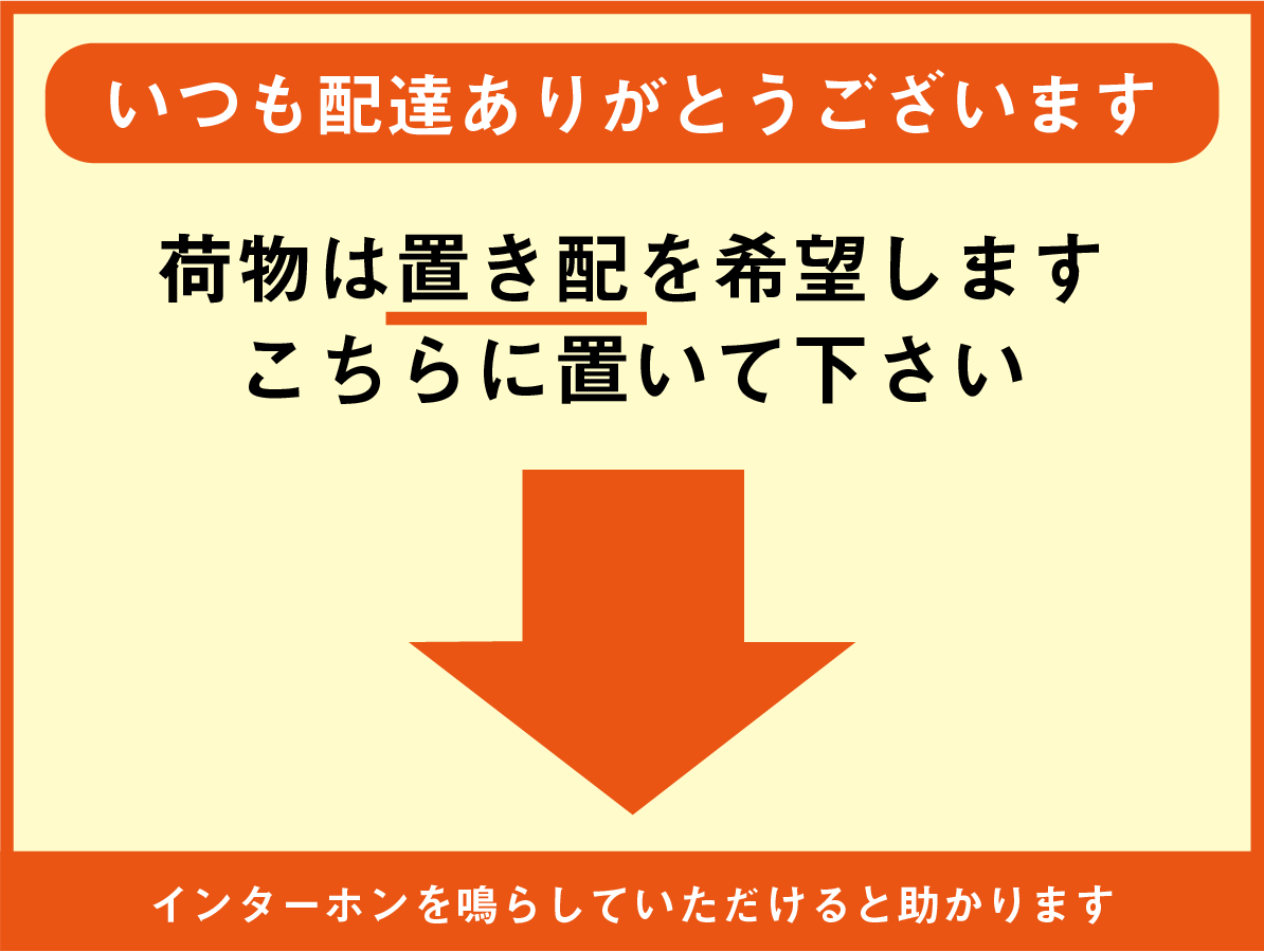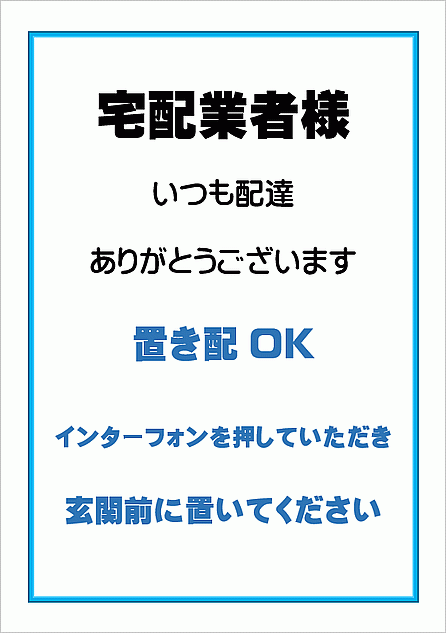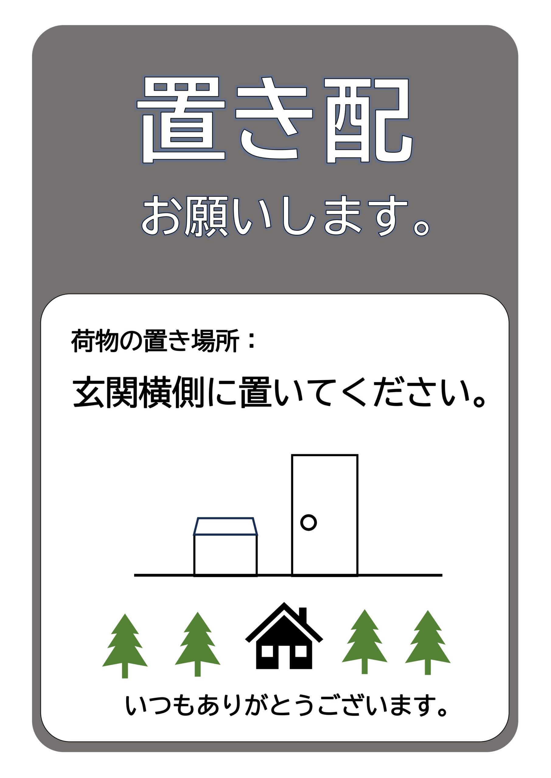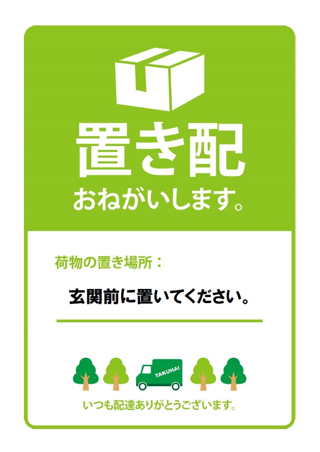 置き配張り紙・お知らせのテンプレートとなり宅配ボックスがない場合や自宅にいても配達員に直接会うことなく、数分後に玄関に取。