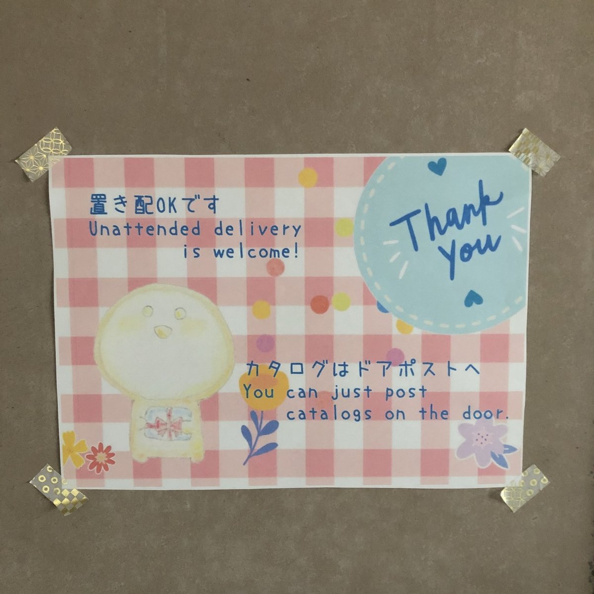 マサヨシ on X: "置き配用に張り紙作った。 全ての配達業者さんに感謝!! https:t.co 9kCjp4Ym5D"X。