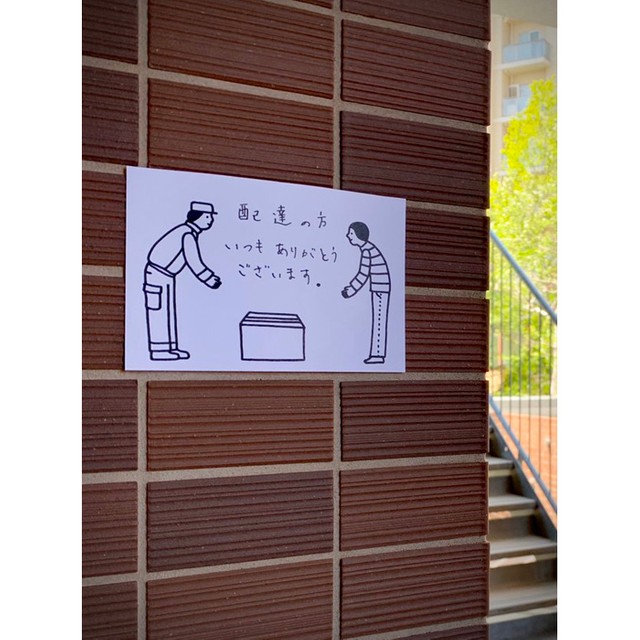 コロナ禍でライフラインを支える配達の方に感謝の気持ちを伝えたい! 貼り紙にしたイラストが話題まいどなニュース。
