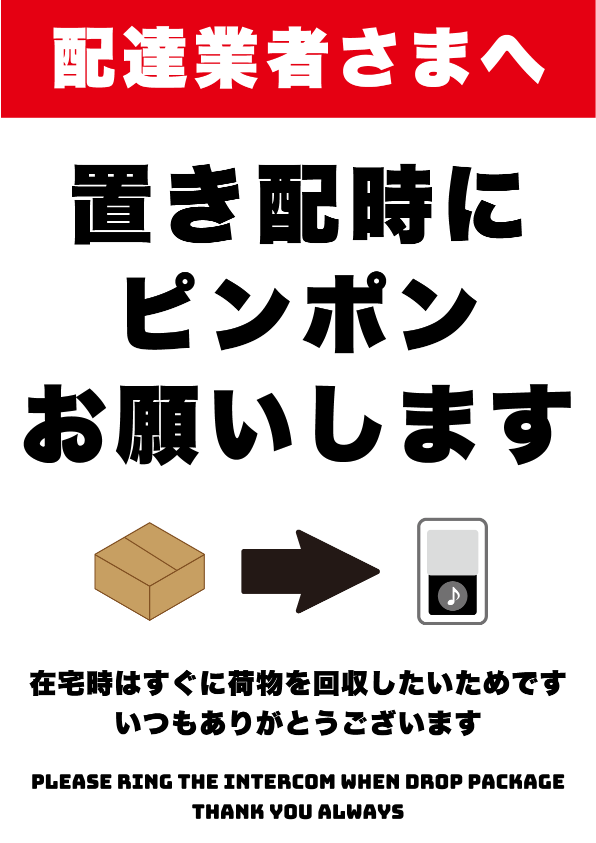 置き配の張り紙:インターフォンの有無 - テンプレートの無料ダウンロード。