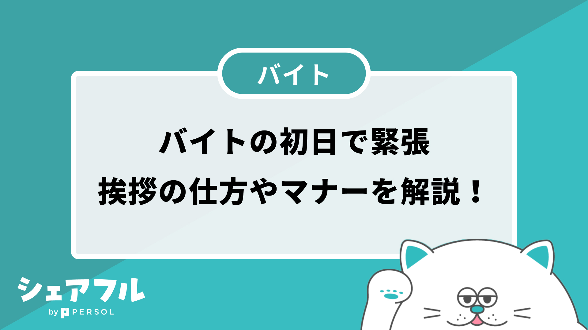 バイトの初日で緊張!挨拶の仕方や知っておきたいマナーを解説シェアフルマガジンスキマバイト・単発バイト・短期バイト情報が充実!超レアなスキマバイト や体験談も満載。