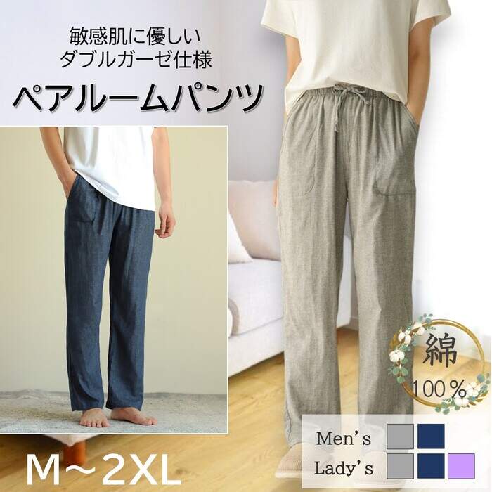 楽天市場動画あり 綿100% 二重ガーゼ レディース メンズ ペアパジャマ ルームウェア ルームパンツ 部屋着 おそろい ダブルガーゼ コットンドット柄 吸汗 通気 肌に優しい 敏感肌 ふんわり やわらかい ゆったり 大きいサイズ 送料無料 M~2XL 3L : グレイス ファミリ。