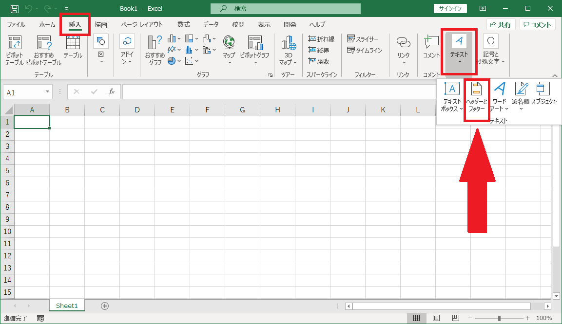 Excelのワークシートのヘッダーやフッターに文字を挿入する方法できるネット。