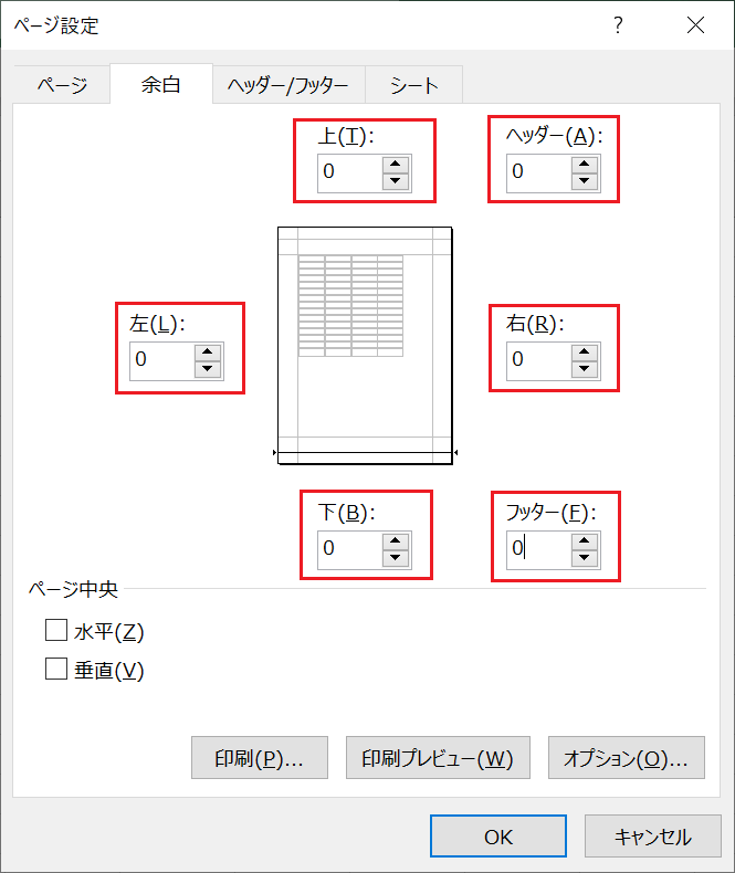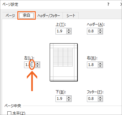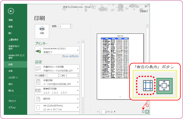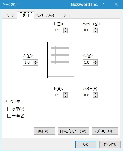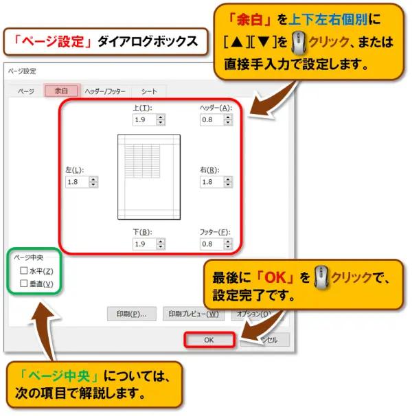 シートの印刷時の余白を設定Excel エクセル の使い方。