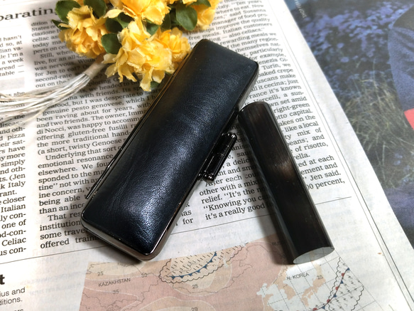 太さ13.5㎜×長さ60㎜ 銀行印・実印サイズ黒水牛ナチュラル 印鑑&ワイルド印鑑ケース 黒系 セット -① はんこ・スタンプ 工房HANZOU通販 17311452Creema クリーマ。