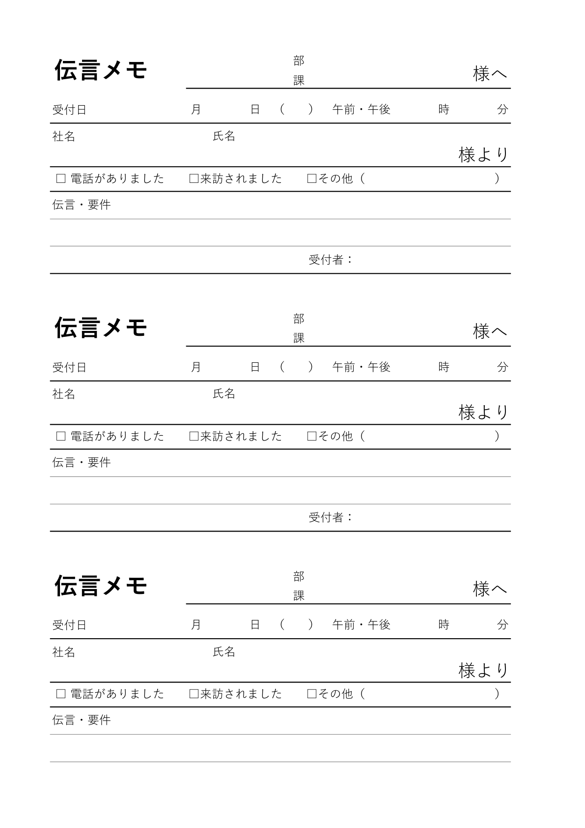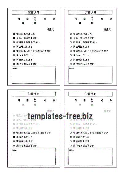 電話伝言メモのテンプレート」を無料でダウンロード - エムム。