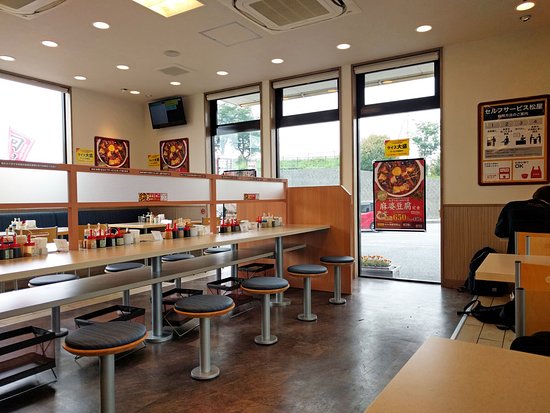 セルフ店になり、中央を店員が歩く席はなくなり、顔だけが隠れる対面式のテーブルが設置されました。以前よりすっきりした感じ。 : image deMatsuya Hiratsuka Kitakaname - Tripadvisor。