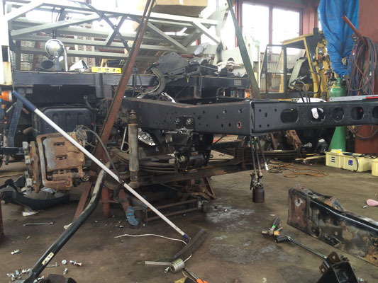 HINO製のプロフィア FS1EG ダンプ架装前 シャシフレーム塗装 - 柳沼ボデー工場 家畜運搬車製造販売。