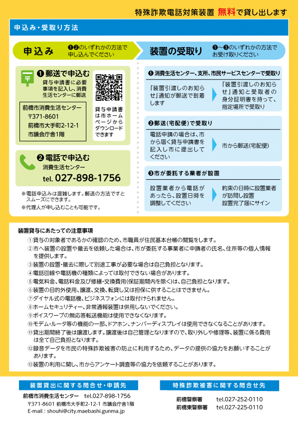 特殊詐欺電話対策装置貸出事業の運用 - 群馬県警 - 群馬県ホームページ 県警本部。