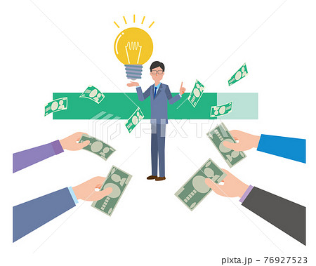 クラウドファンディングのプロセス。スタートアップ ビジネス アイデアに投資。フラットなデザイン イラスト。のイラスト素材・ベクター Image47547165。