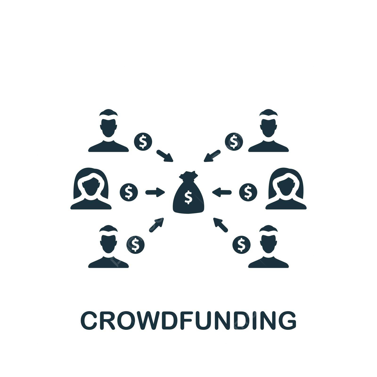 モノクロ スタイルのテンプレート Web デザインとインフォ グラフィック用の合理化されたクラウドファンディング アイコン ベクター, ストラテジー,クラウドファンディング, 仕事イラスト画像、PNGフリー 素材の、ロイヤリティフリ。