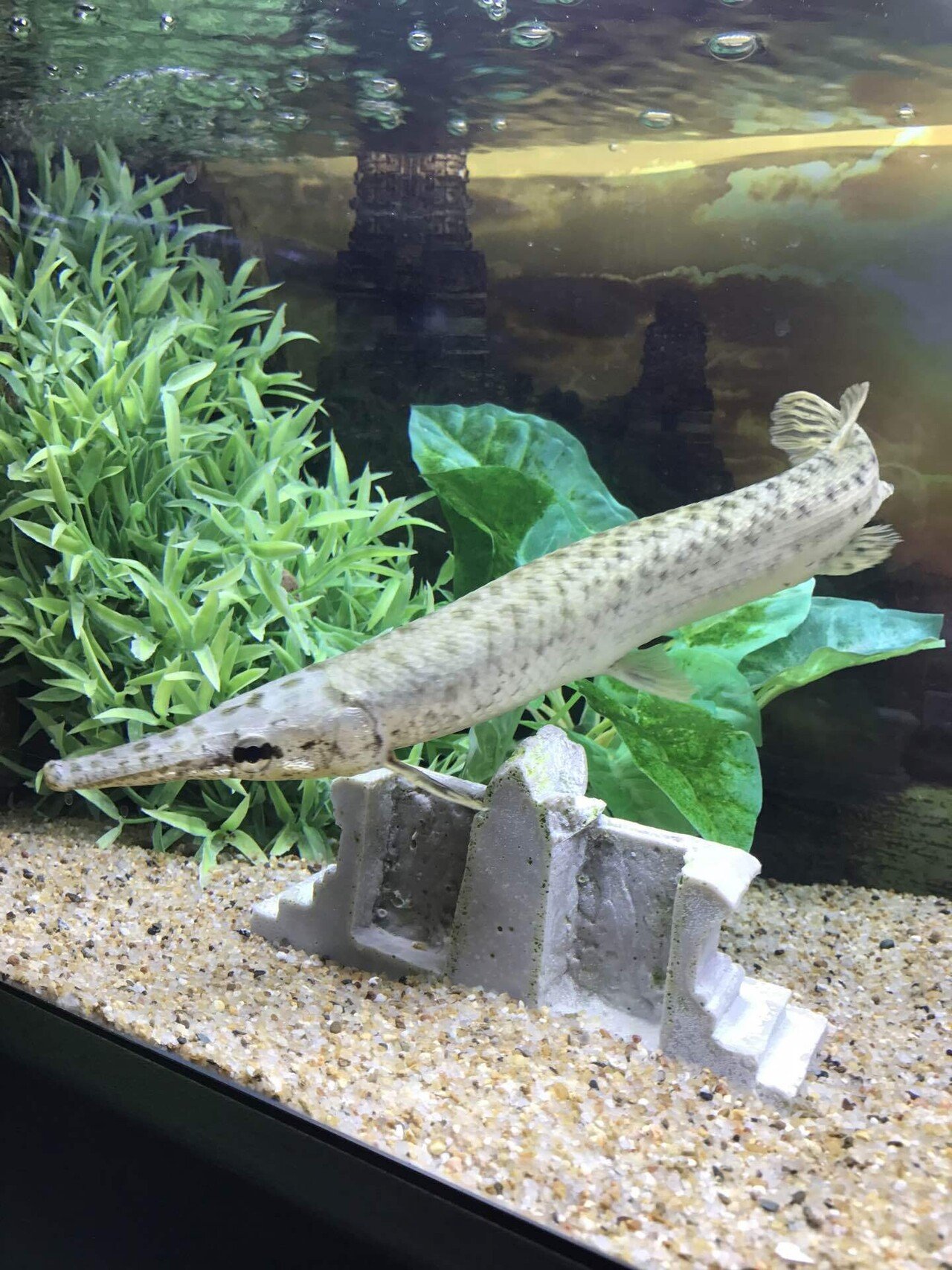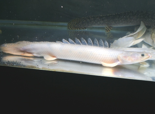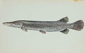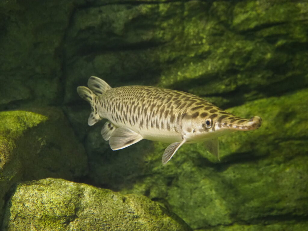 スポテッドガー。原始的な形質を持つ古代魚。二億年前から姿を殆ど変える事なく現代まで生存している「生きた化石」。鰐の様な鋭い牙を持ちガノイン鱗 と呼ばれる硬い鱗を纏っている。食性は動物食だがおとなしい性格。kaworukumada。
