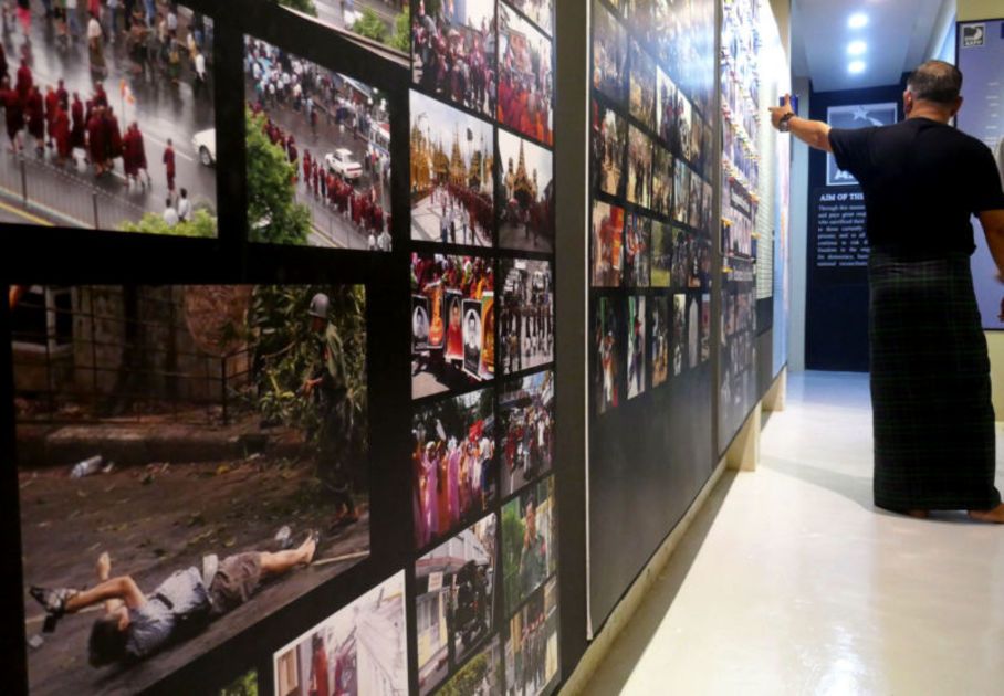 2007年のデモ取材中に撃たれ死亡した長井健司さん 左下の写真 についても紹介する博物館=19年10月、ヤンゴン -邦人記者拘束に思う「現場」の重みと非情 バンコク・川合秀紀 - 写真・画像 4 4西日本新聞me。